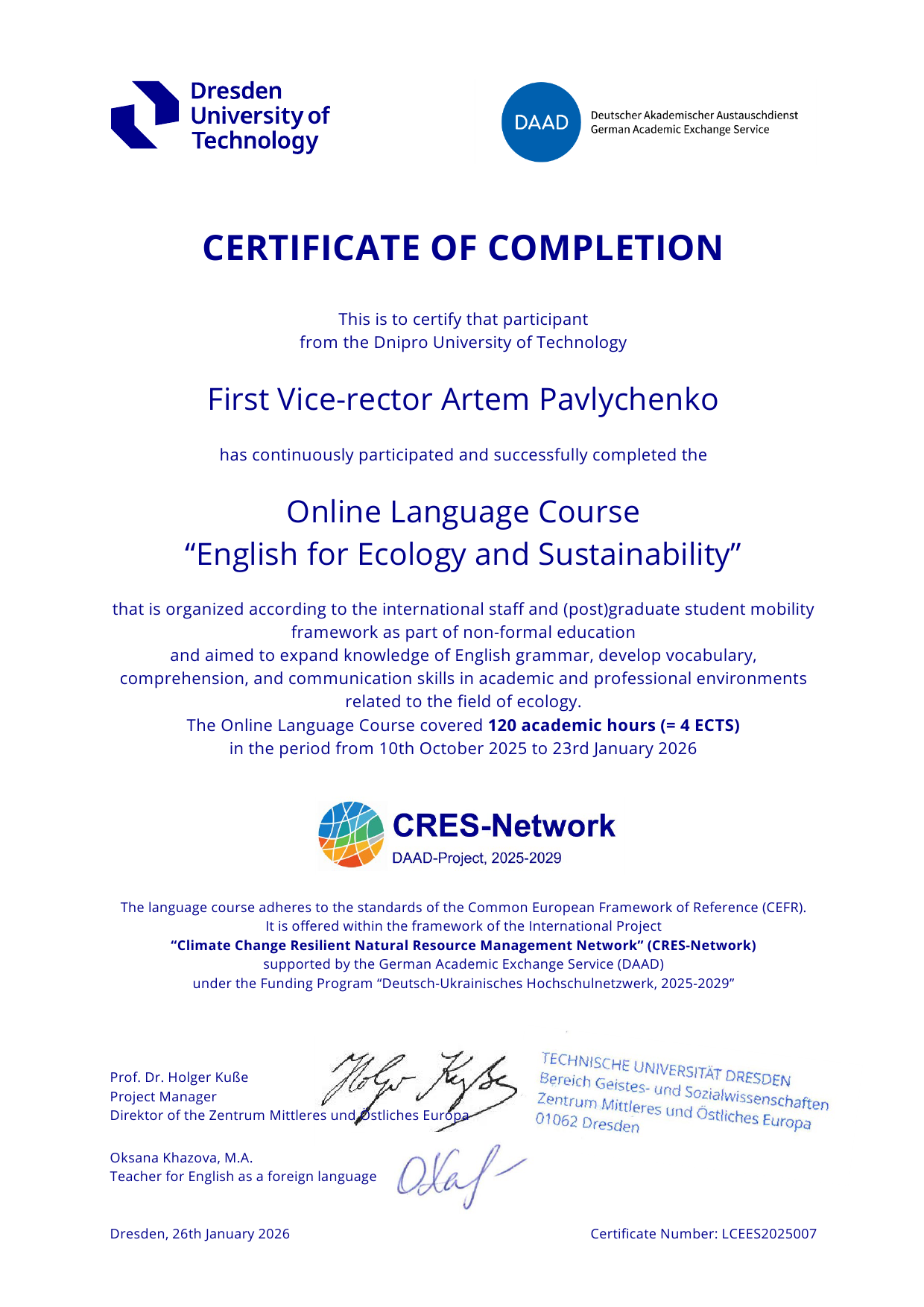 здобув кваліфікацію "Економіст в сфері природокористування.