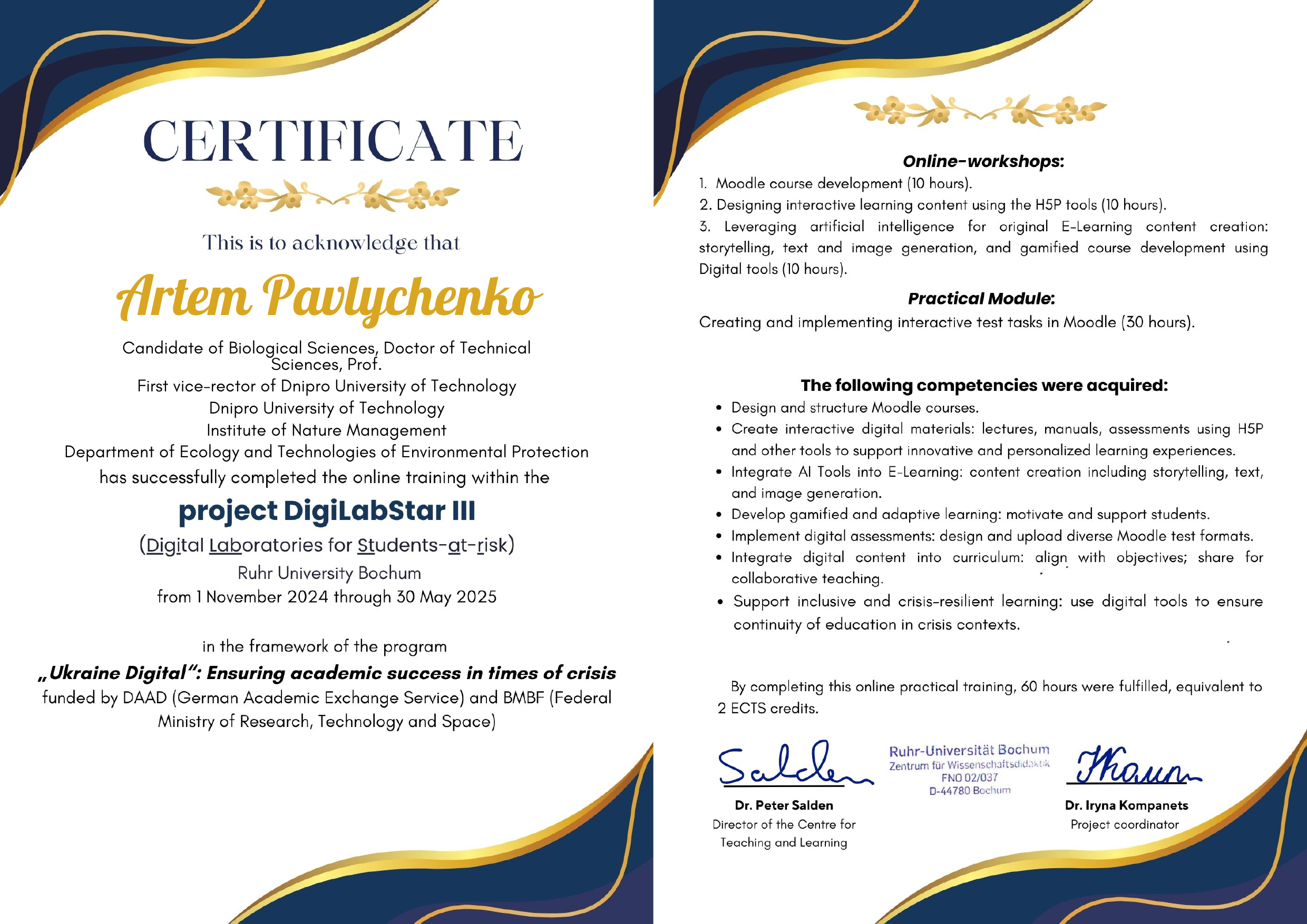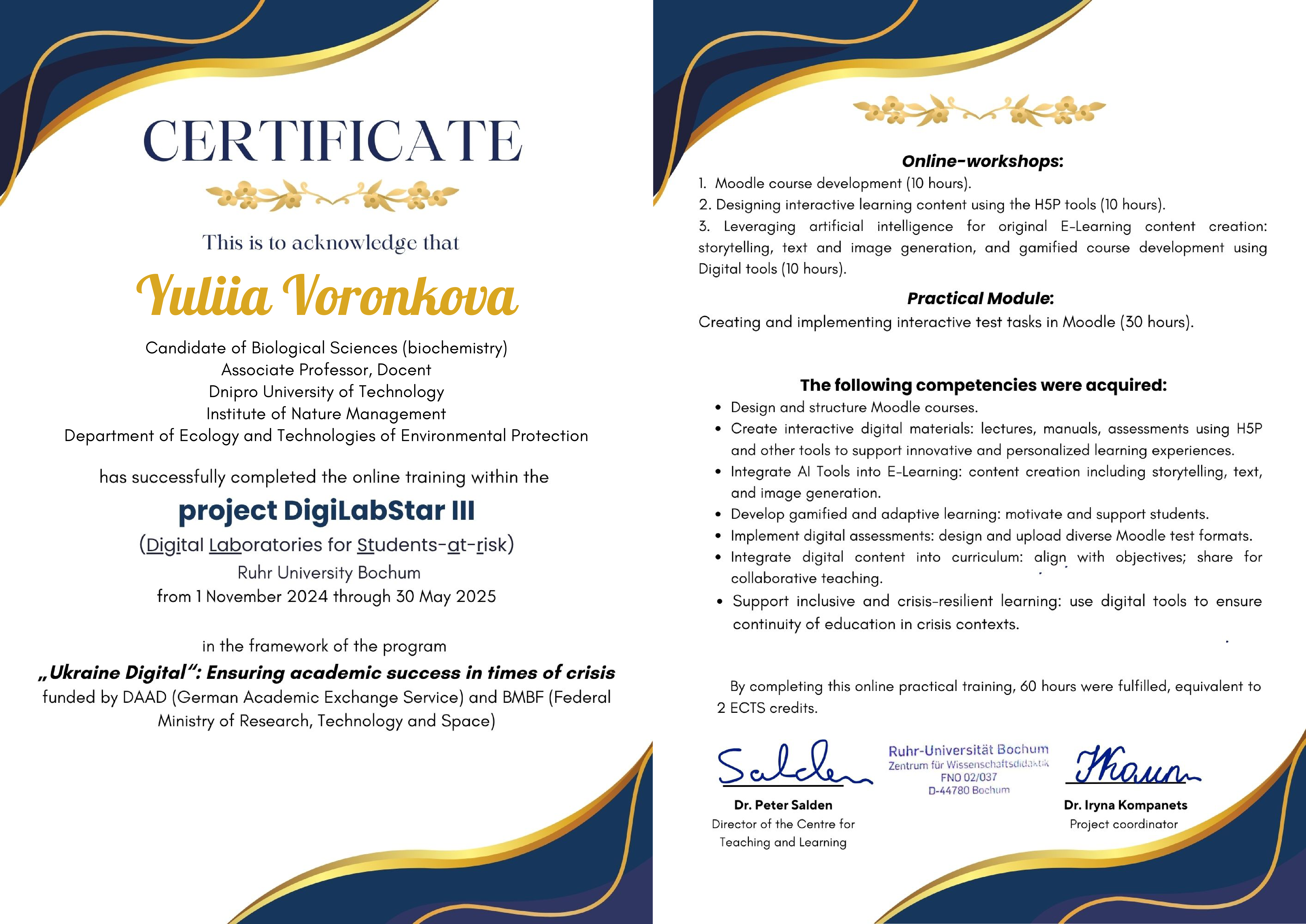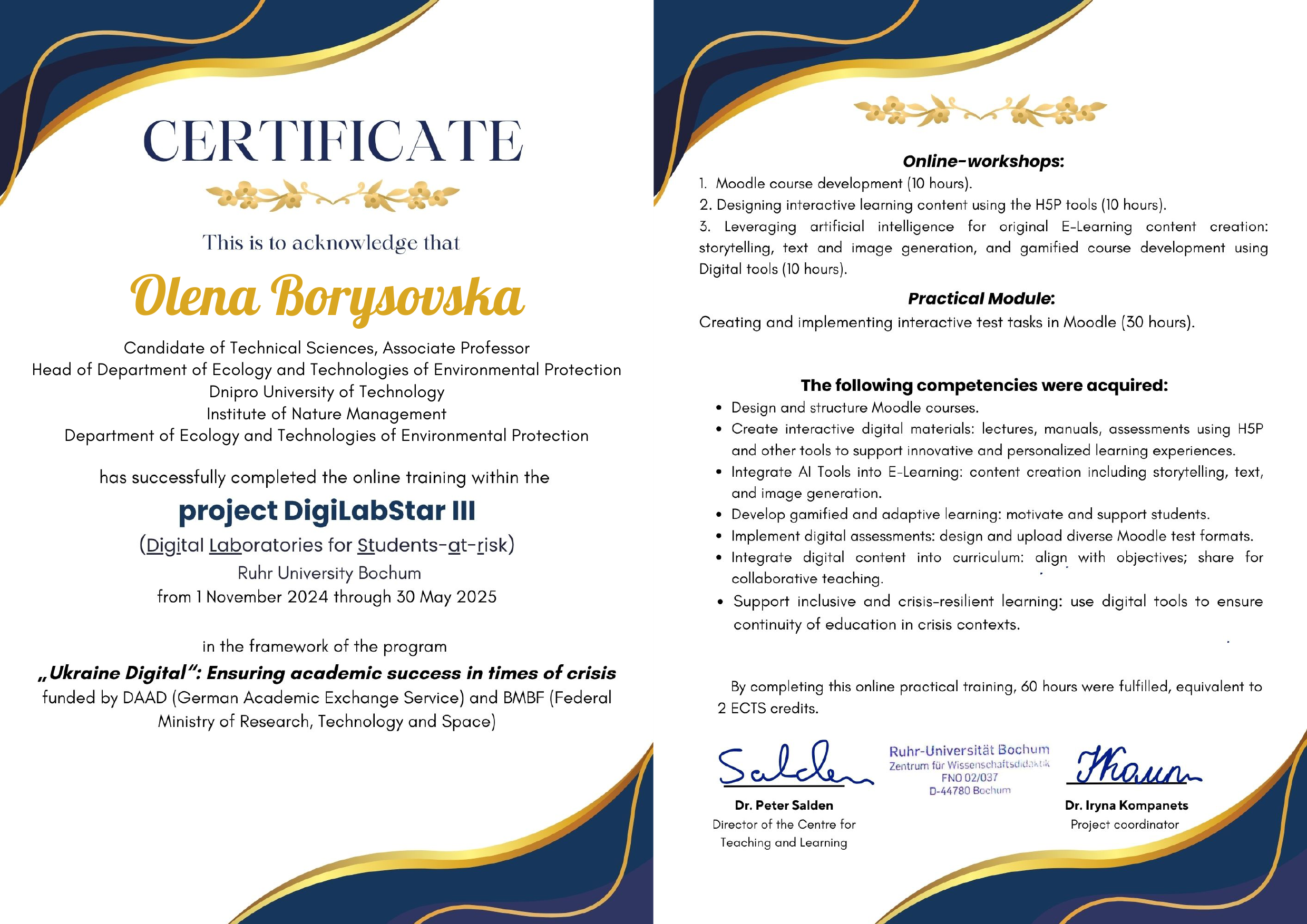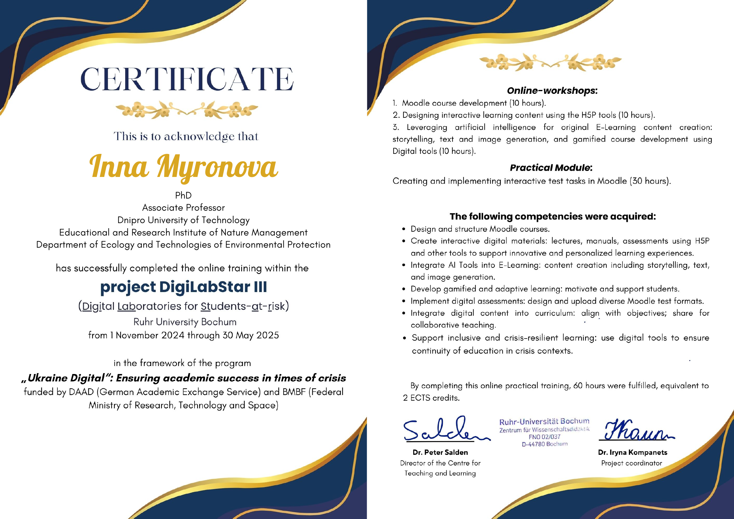 Ми пишаємося нашими колегами – Оленою Борисовською, Інною Мироновою, Юлією Воронковою та Артемом Павличенком, які успішно завершили престижний міжнародний курс DigitalbStar III (Ruhr University Bochum, Німеччина) та отримали офіційні сертифікати!