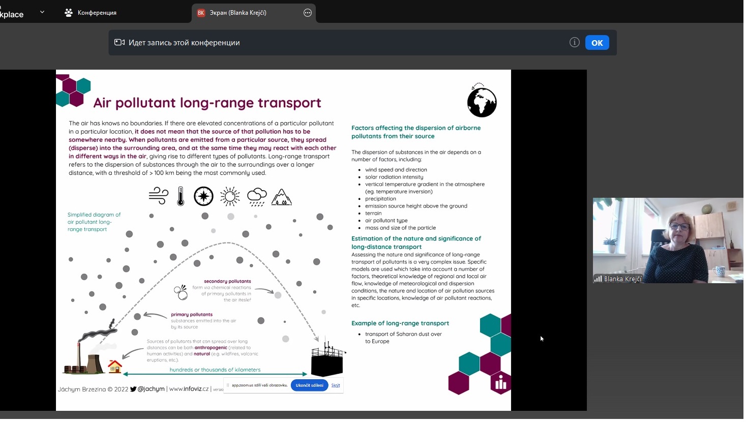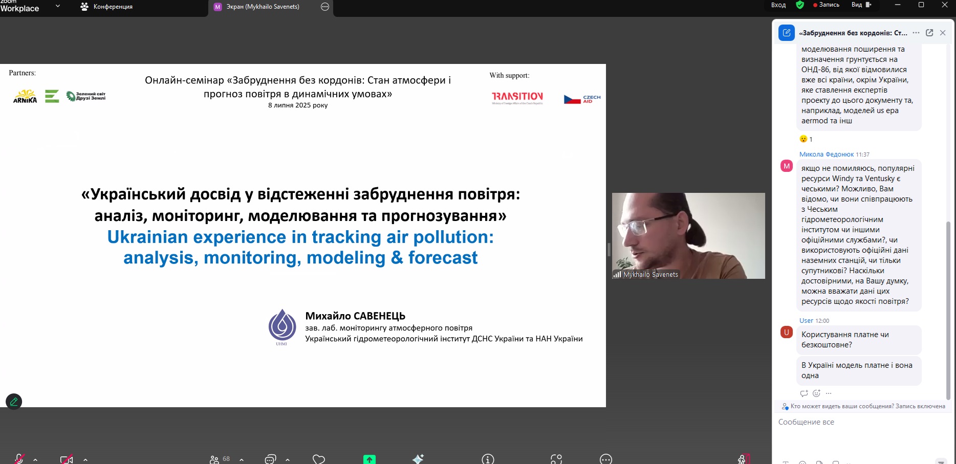 Представники кафедри екології сьогодні долучилися до важливого міжнародного онлайн-семінару «Забруднення без кордонів: Стан атмосфери в умовах війни», організованого програмою «Чисте повітря для України» та чеською НГО «Арніка» (Arnika).