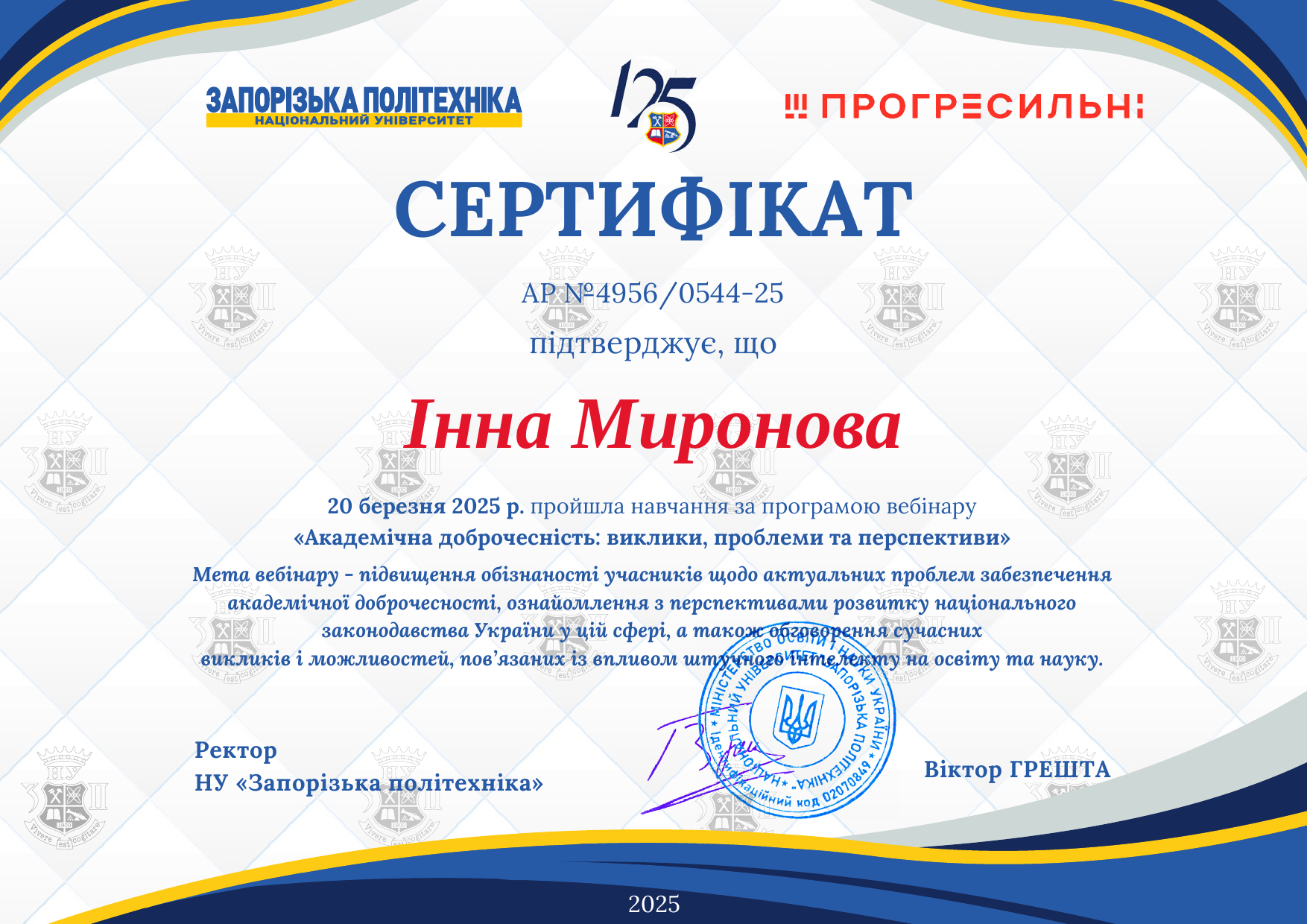 📚 Метою вебінару було: 🔹 підвищення обізнаності щодо сучасних викликів академічної доброчесності; 🔹 ознайомлення з перспективами розвитку національного законодавства у цій сфері; 🔹 обговорення впливу штучного інтелекту на освіту та науку.