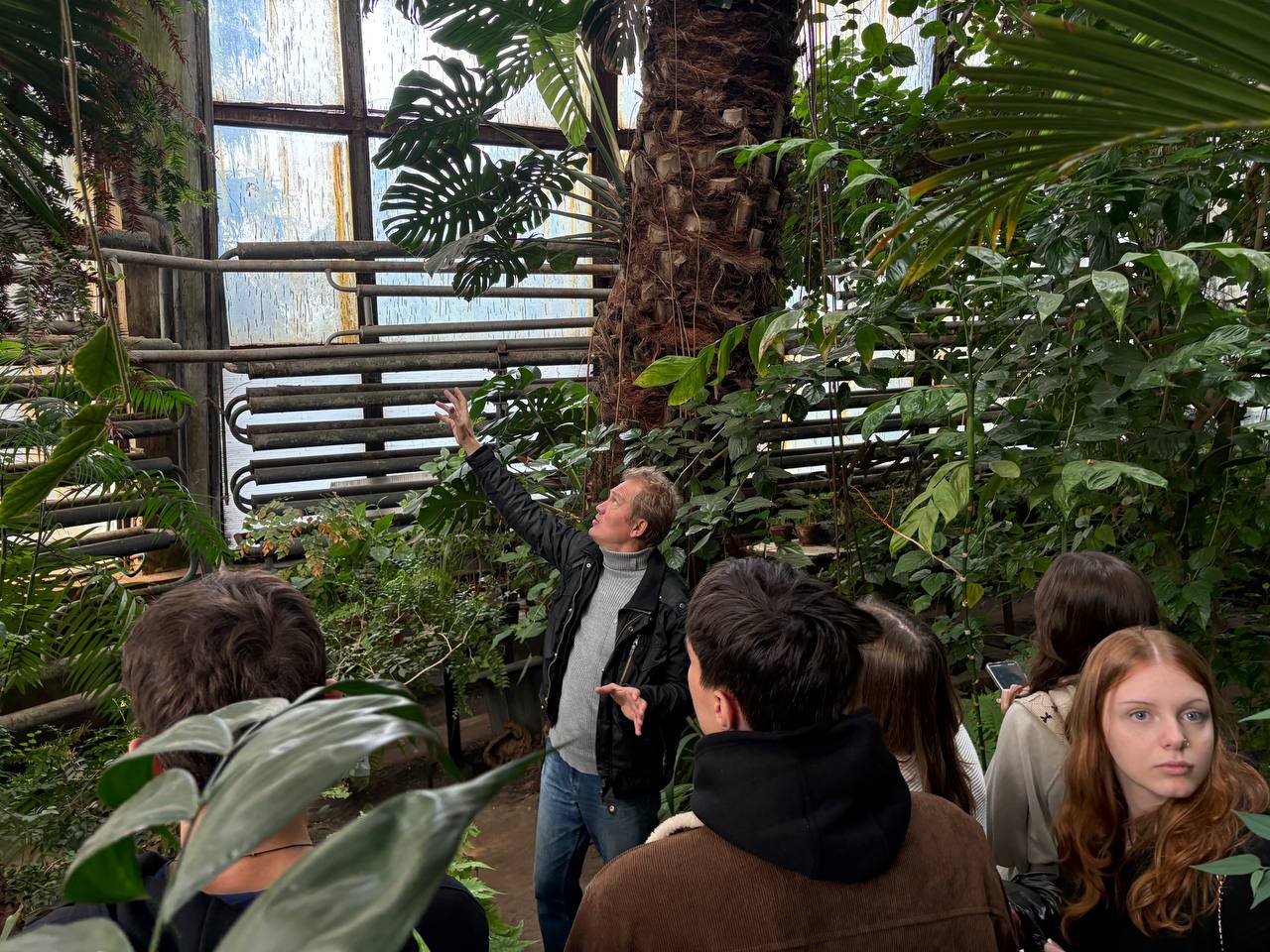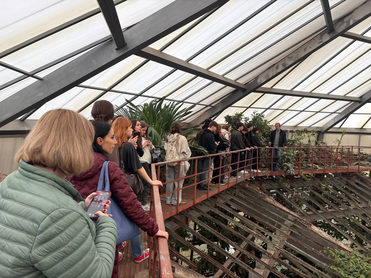 Екскурсія була проведена у кілька етапів ⏳✨ – від загальної розповіді про історію ботсаду 📖 до детального знайомства з кожною тематичною зоною оранжереї 🌺🏝. Такий фазовий формат дав змогу студентам не лише почути цікаві факти 📚, а й поступово зануритися у світ екзотичних рослин 🌿.