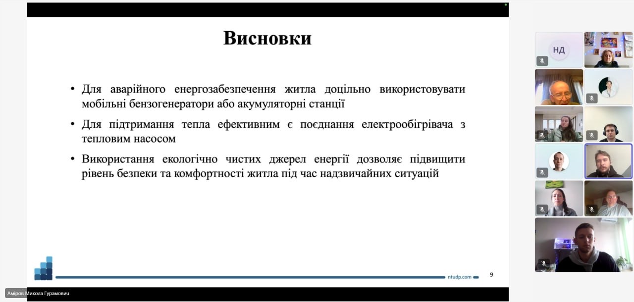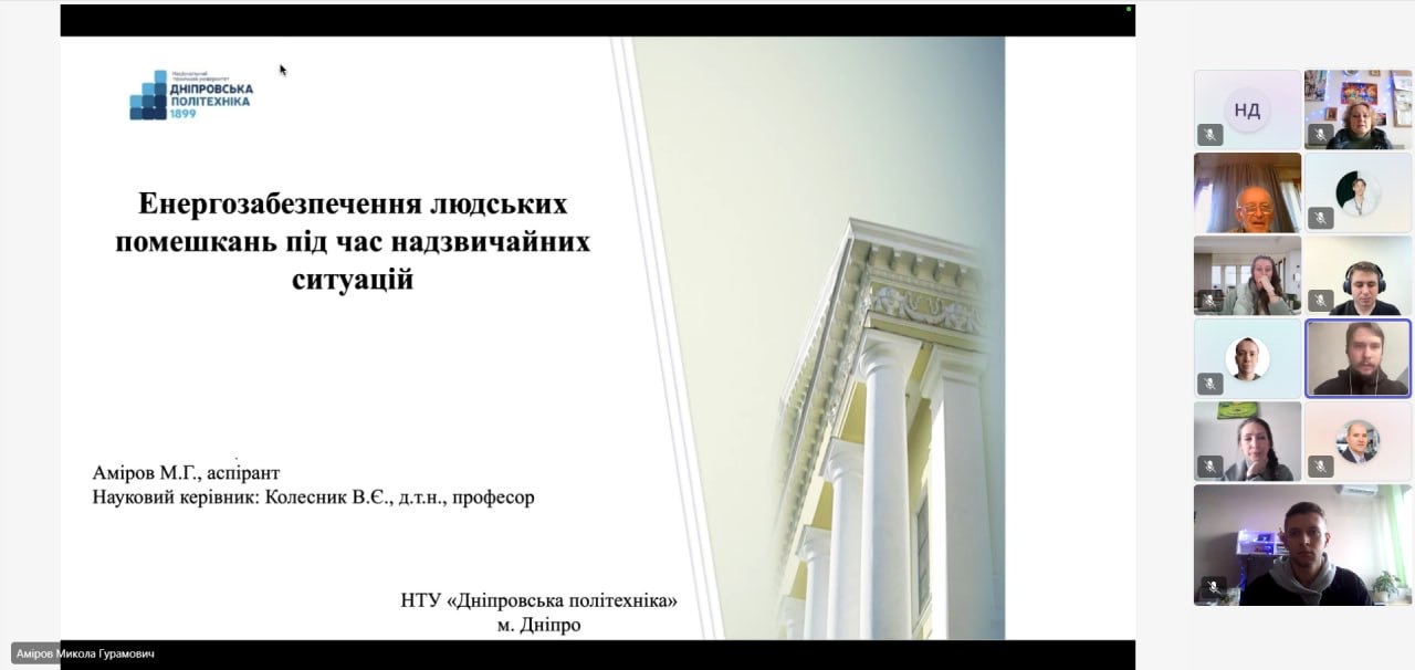 🔹 Аміров Микола Гурамович (аспірант, наук. керівник – В.Є. Колесник) «Енергозабезпечення людських помешкань під час надзвичайних ситуацій»