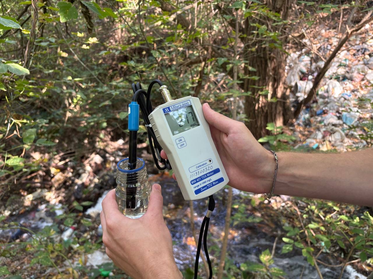 Найбільш проблемна точка. У воді зафіксовано перевищення нітратів і нітритів - ознака побутового забруднення та стоків. Спостерігались піна, неприємний запах і велика кількість мікропластику.