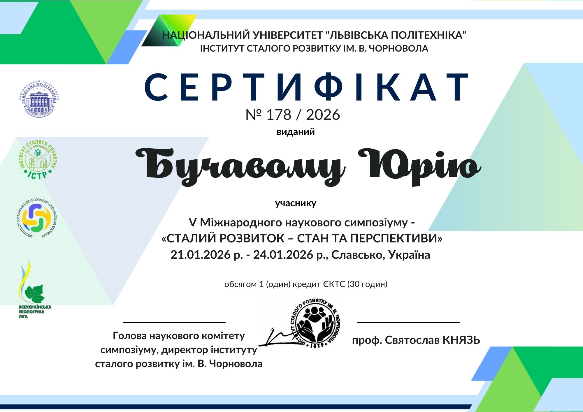 7. Дрезденський технічний університет за підтримки Німецької служби академічних обмінів (DAAD), Участь в науковому онлайн-форумі «Сталий розвиток України: нові випробування та можливості». Сертифікат KUD2024066 від 22.02.2024, 0,25 кредити ЕКТС(8 годин)
