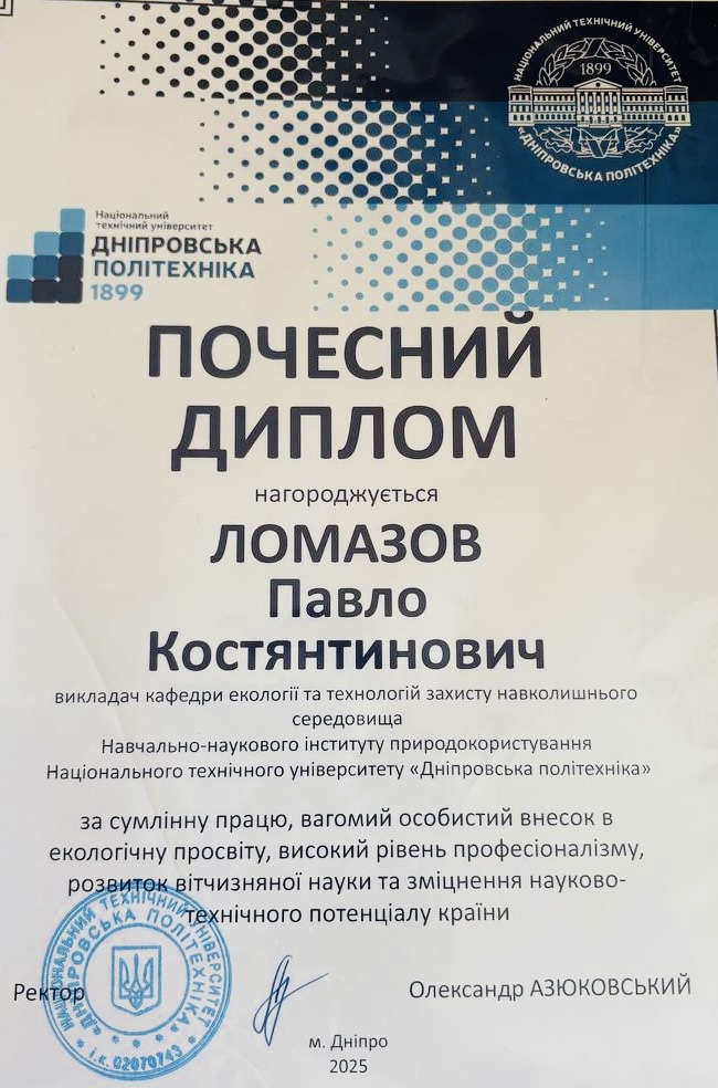 Ломазов Павло Костянтинович – доцент кафедри, PhD (Технології захисту навколишнього середовища).